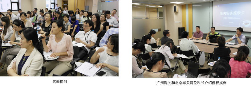 隨后,北京海關(guān)法規(guī)處知識產(chǎn)權(quán)科的亓明和廣州海關(guān)法規(guī)處知識產(chǎn)權(quán)科的黃衛(wèi)東兩位科長,結(jié)合來自海關(guān)一線侵權(quán)現(xiàn)象的大量實例和圖片,介紹了海關(guān)在打擊知識產(chǎn)權(quán)侵權(quán)工作中的具體流程、時間節(jié)點、查驗標準等,并通過生動的案例,為大家介紹了近年來侵權(quán)的特點和方式,以及高風險的產(chǎn)品和路線等。很多企業(yè)代表和律師都表示,從沒如此直觀、詳細地了解過海關(guān)在查驗查扣侵權(quán)產(chǎn)品時的工作,增加了對海關(guān)工作的理解。