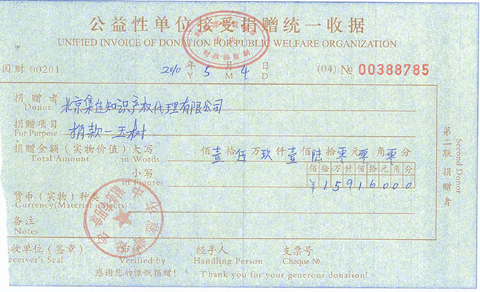 2010年5月4日,集佳員工代表將善款轉(zhuǎn)交至中華慈善總會玉樹賑災(zāi)專項行動,并代表集佳全體員工表達(dá)了一個共同的愿望:與全國人民一起,為玉樹重建溫暖的家園!