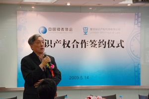 2009年5月14日上午9時,在集佳知識產權代理有限公司內,中國鐘表協會與北京集佳知識產權代理有限公司簽訂了10年的知識產權合作協議。中國鐘表協會孟可人理事長與集佳知識產權代理有限公司副所長、高級合伙人李雷先生分別代表雙方在協議上簽字,就聘請集佳知識產權代理有限公司為中國鐘表協會知識產權顧問達成一致。《中國日報》、《中國IP》雜志、人民網知識產權頻道等多家媒體以及一些企業代表共同見證了這一意義非凡的時刻。