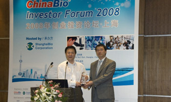 集佳贊助ChinaBio投資者上海論壇 合伙人祖侃為獲獎者頒獎