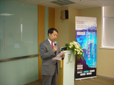 經(jīng)過(guò)十多年的發(fā)展,集佳已經(jīng)和國(guó)內(nèi)多家生物科技企業(yè)建立知識(shí)產(chǎn)權(quán)方面的合作,正因?yàn)槿绱耍珻hinaBio Accelerator選擇了把集佳作為首次活動(dòng)的舉辦地點(diǎn),同時(shí)邀請(qǐng)了在生物技術(shù)領(lǐng)域有著豐富經(jīng)驗(yàn)的知識(shí)產(chǎn)權(quán)專家集佳合伙人劉超博士出席并做演講。出席本次活動(dòng)的嘉賓還有ChinaBio總裁和創(chuàng)建人Greg B. Scott 先生、保諾科技(北京)有限公司CEO Nigel R.A. Beeley博士。他們分別就中國(guó)企業(yè)如何吸引投資者、如何通過(guò)外包降低藥物研發(fā)成本的主題進(jìn)行了精彩的演講。