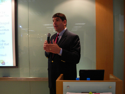 另一講座的專家是來自鹽湖城的律師事務所,該所是鹽湖城最大的知識產權事務所。與上一律師事務所演講內容互為補充,該所專家側重介紹了美國專利實踐中的最新發展,美國專利改革的現狀,專利賠償金額情況,尤其是通過分析典型案例對美國專利審查的新動向作了詳細地說明,具有重要的實踐指導作用。