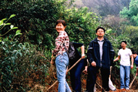 是日,春光明媚、薄霧輕撓,一大早,全體員工乘車來到白云山西門。到達目的地后,每三人一組迅速投入到火熱的勞動中去,整個場面充滿了青春的氣息和勞動的熱情。在廣辦商總的建議下,我們放棄了園丁已挖好的樹坑,在山坡上找到一塊荒地,由業務部的李遠新經理牽頭,發揚開荒牛的精神,男的挖坑種樹、女的澆水踩實,開創屬于我們自己的“集佳林”。“京誠”所至、金石為開,在大家的共同努力下,很快11棵小樹就挺立在春風之中,并在樹林旁立下一塊寫有“集佳林”的石埤以示紀念。一想到不久的將來,這里會有一片由集佳員工親手種下的“集佳林”,大家的心情就激動不已。