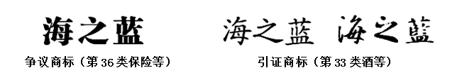 事實理由和法律依據:盛唐公司在第36類“保險,金融管理,藝術品估價,不動產出租,商品房銷售,擔保,募集慈善基金,受托管理,典當經紀”服務上注冊了“海之藍”商標,洋河公司提出無效宣告后,商評委裁定撤銷爭議商標。盛唐公司不服向北京知識產權法院起訴,法院維持商評委裁定,并明確了“海之藍”系中國馳名商標之事實,通過認定馳名商標對爭議商標予以無效宣告。