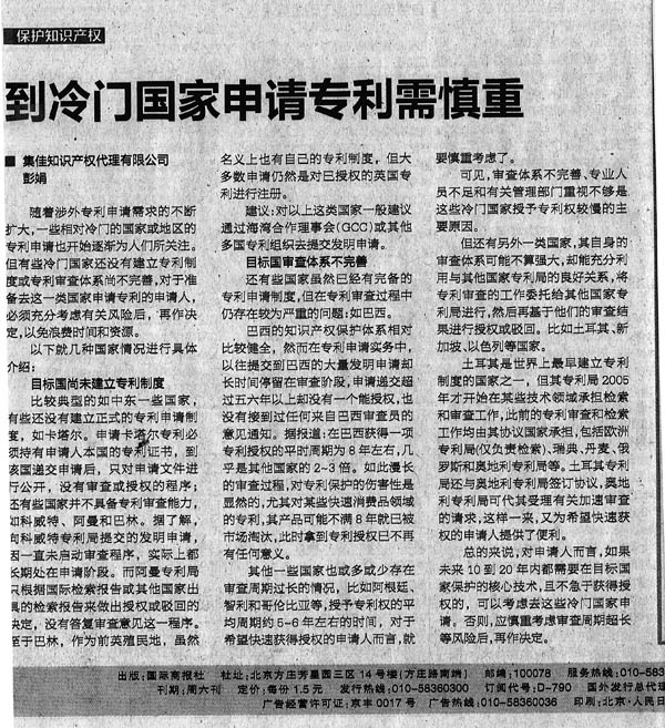 《國際商報》:到冷門國家申請專利需慎重