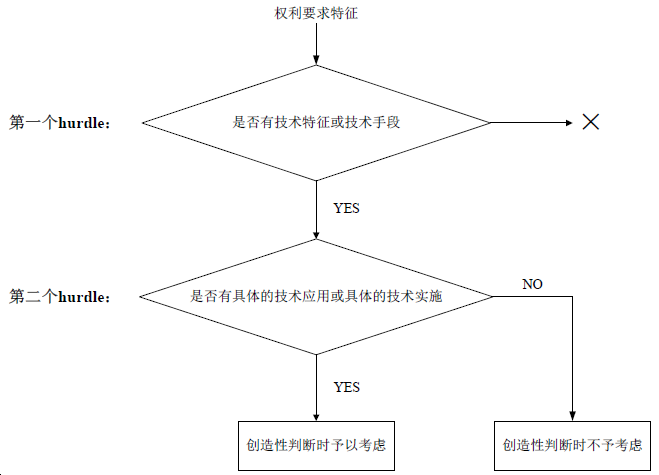 第二個hurdle涉及EPC第56條關于創造性的審查,即權利要求的特征是否有具體的技術應用或具體的技術實施。若有,則對發明的技術性做出貢獻,是技術特征,納入創造性整體考量的范疇。若無,則未對發明的技術性做出貢獻,是非技術特征,在創造性判斷時不予考慮。