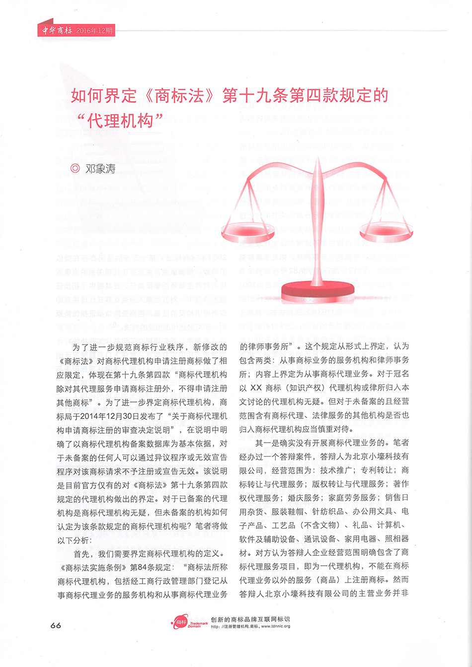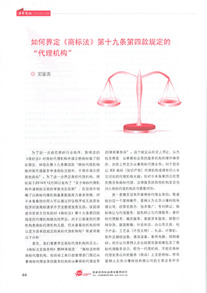 集佳文章《如何界定<商標法>第十九條第四款規定的“代理機構”》在《中華商標》發表