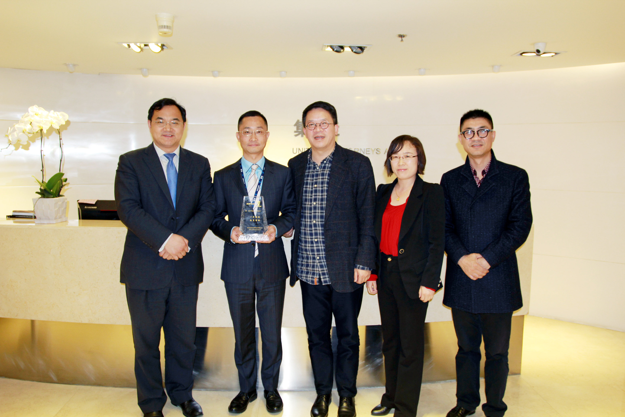 3月30日,一個(gè)再普通不過(guò)的日子,可對(duì)于集佳來(lái)說(shuō),卻是個(gè)暖心而值得紀(jì)念的日子。這一天,杭州奧普電器有限公司董事長(zhǎng)方杰、法務(wù)部經(jīng)理崔強(qiáng)親臨集佳,贈(zèng)送牌匾,以感謝集佳與奧普攜手并肩,為取得奧普商標(biāo)案的全面勝利所作出的努力。集佳知識(shí)產(chǎn)權(quán)代理有限公司朱國(guó)棟部長(zhǎng)、張亞洲部長(zhǎng)、李春亞部長(zhǎng)、集佳律師事務(wù)所李永波主任、侯玉靜律師、奧普案知識(shí)產(chǎn)權(quán)顧問(wèn)馬麗華等陪同接待。