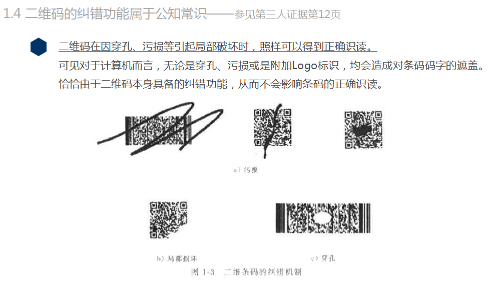 最后,關(guān)于二維碼的成功,以至于成為當(dāng)今商業(yè)社會最為重要的流量入口,這一方面要歸功于二維碼本身加入了Reed-Solomon糾錯算法,為其廣泛傳播奠定了基礎(chǔ);另一方面則要歸功于國家的高度重視,以及騰訊、阿里等互聯(lián)網(wǎng)科技公司所做出的不懈努力。然而,這與涉案專利并無關(guān)聯(lián)。