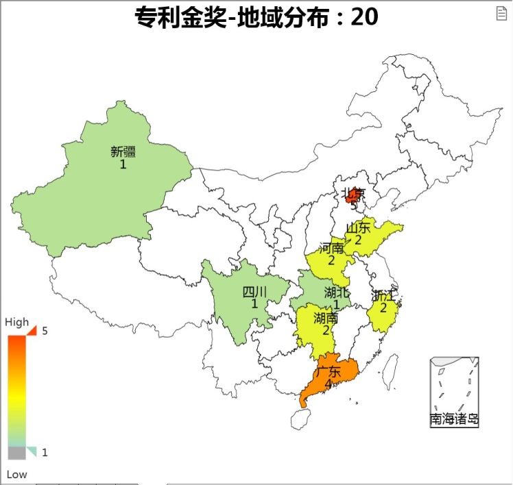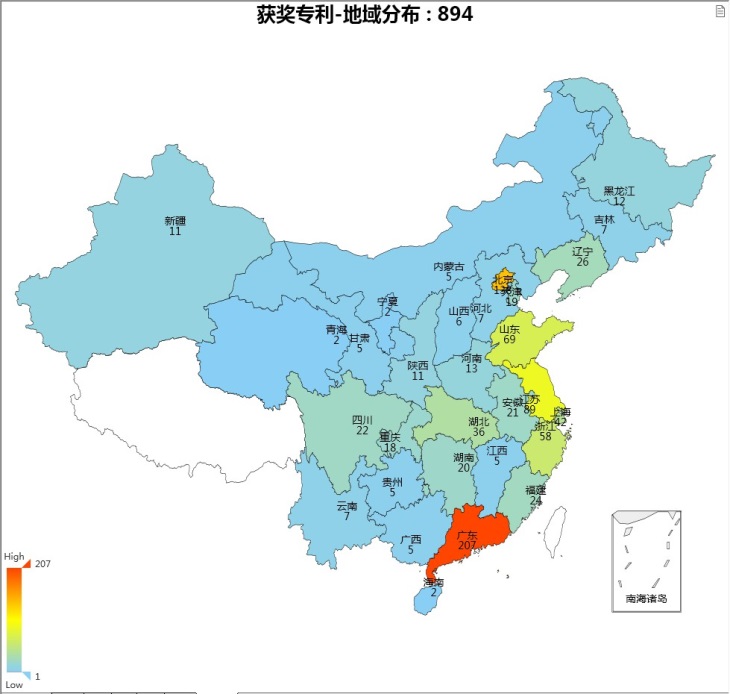 圖3專利獎(jiǎng)獲獎(jiǎng)專利地域分布