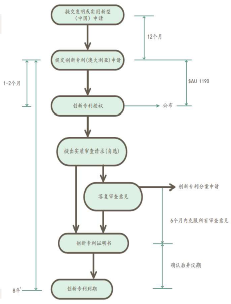 標(biāo)準(zhǔn)專利:可以通過PCT/CP提交澳大利亞標(biāo)準(zhǔn)專利新申請,并在5年內(nèi)提出實(shí)質(zhì)審查(PCT從PCT國際申請日起算,CP從澳大利亞申請日起算)。在收到第一次審查意見后12個(gè)月內(nèi)克服所有缺陷,克服缺陷后進(jìn)入審定,審定后3-6個(gè)月授權(quán)。標(biāo)準(zhǔn)專利保護(hù)期限是20年(藥物、藥品專利保護(hù)期限為25年)。