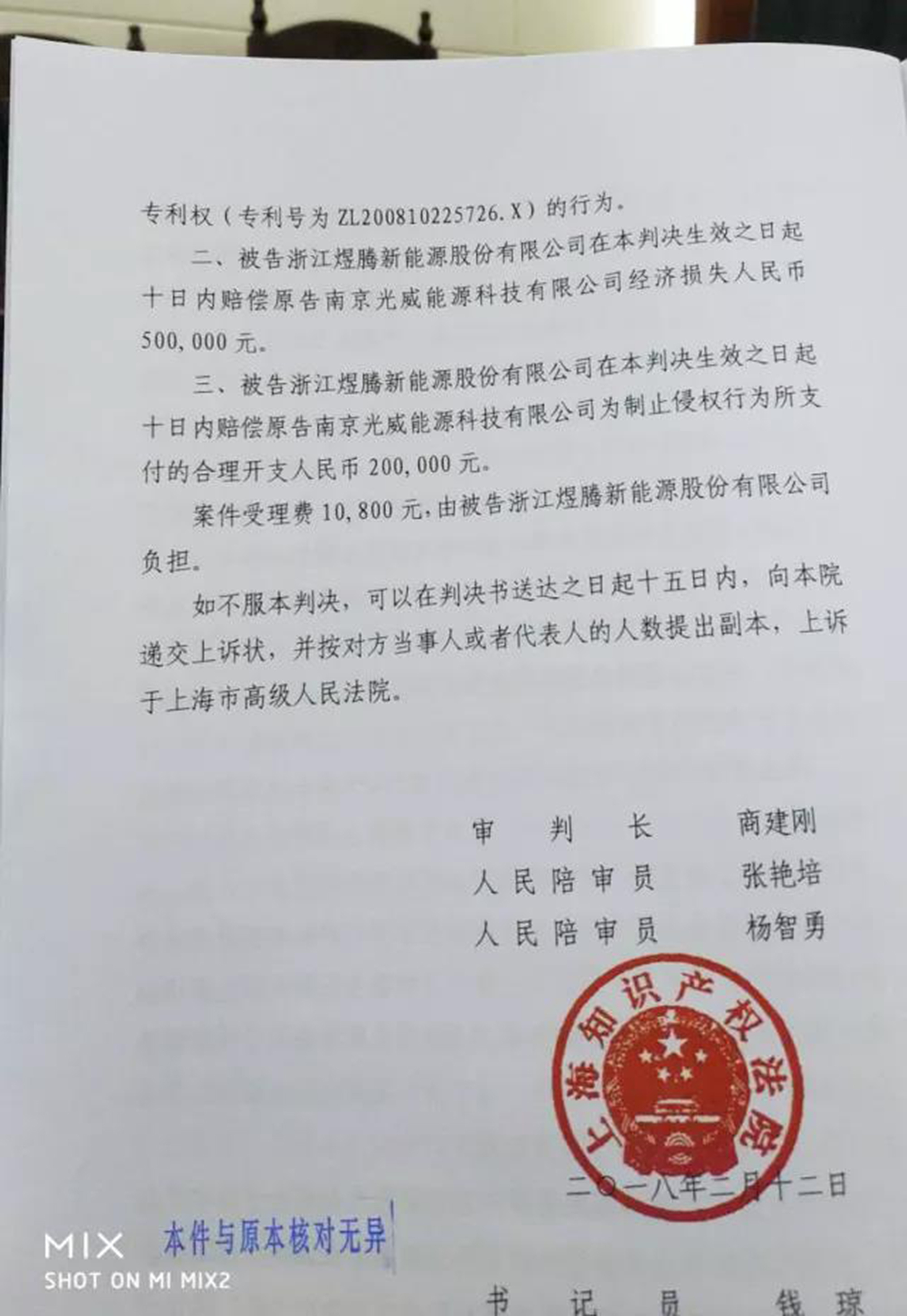 集佳代理南京光威能源科技有限公司(以下簡稱“光威公司”)訴浙江煜騰新能源股份有限公司(以下簡稱“煜騰公司”)侵害發(fā)明專利權(quán)糾紛一案,經(jīng)上海知識(shí)產(chǎn)權(quán)法院一審查明事實(shí)后,于2018年2月12日宣判:被告煜騰公司制造、銷售、許諾銷售的被控“板式太陽能集熱器產(chǎn)品”落入涉案專利權(quán)的保護(hù)范圍,被告在判決生效之日起停止侵害涉案發(fā)明專利權(quán)的行為,并全額支持了原告主張的侵權(quán)損害賠償及合理開支。