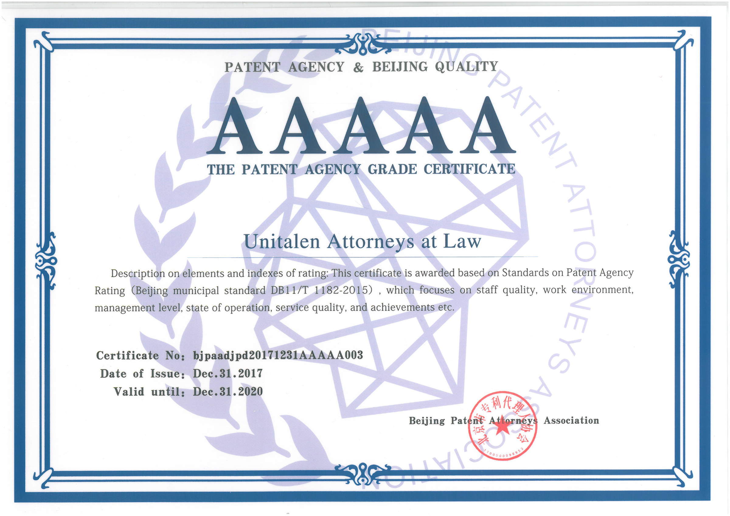 集佳刷新2017年“AAAA級專利代理機構”的記錄,在2018年獲評首批“AAAAA級專利代理機構”,工作再一次得到了北京市知識產權局、北京市專利代理人協會、首都知識產權服務業協會以及業界的充分認可和鼓勵。未來,集佳將繼續強化知識產權服務意識,秉承“站在客戶的角度考慮每一個問題”“全身心地關注客戶的每一個細節”的企業理念,不斷提升業務水平,努力為首都知識產權行業的持續健康發展貢獻力量。