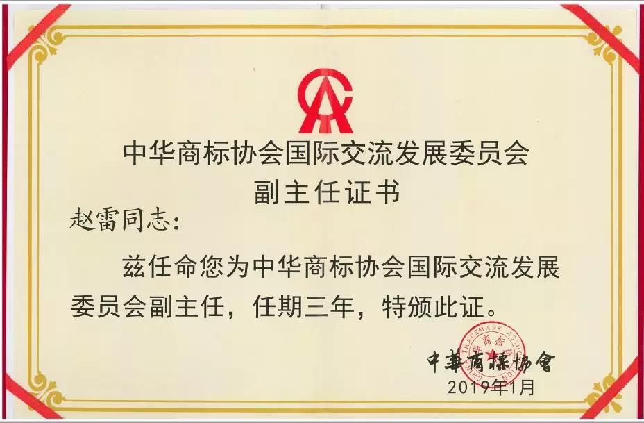 集佳合伙人趙雷律師獲聘中華商標協(xié)會國際交流發(fā)展委員會副主任