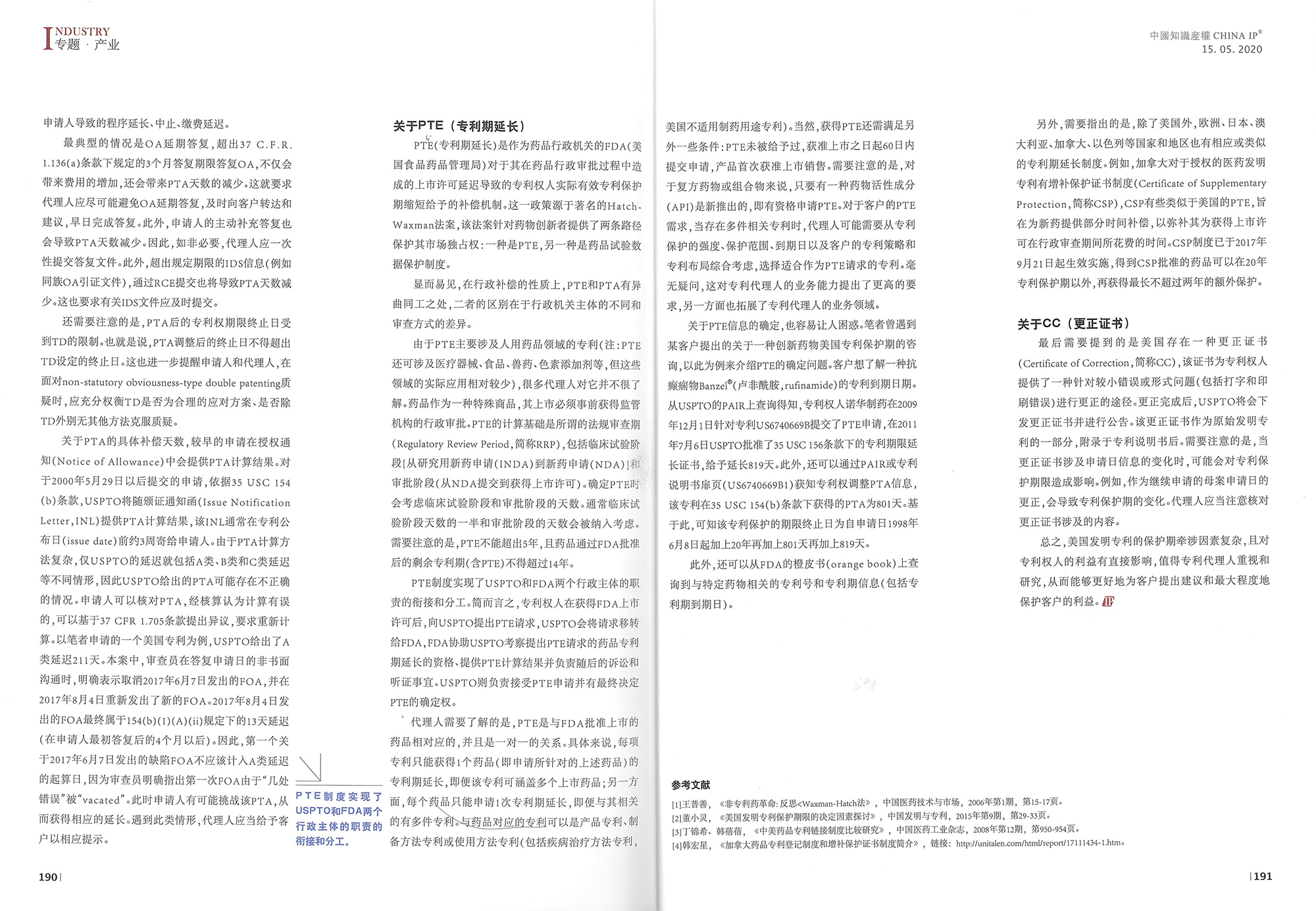 集佳文章《從美國專利保護期的角度看專利代理人的代理行為》在《中國知識產權》發表