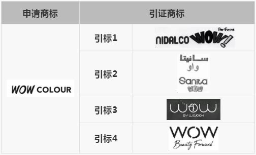 ”標樣僅是重復了“WOW”,與原標樣區別不大。最終,通過在“WOW COLOUR”的上方增加卡通圖形使三件申請商標獲準注冊。
