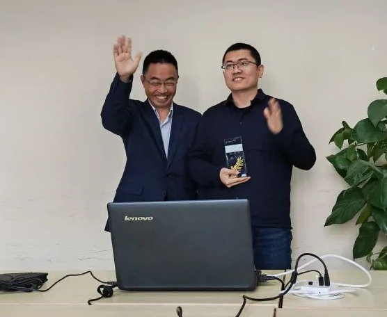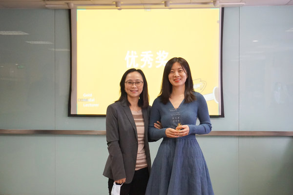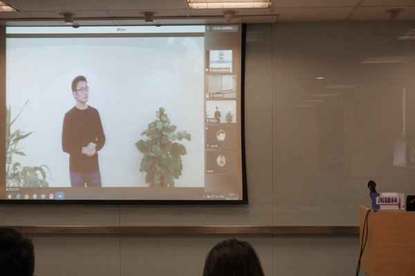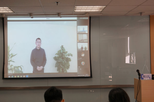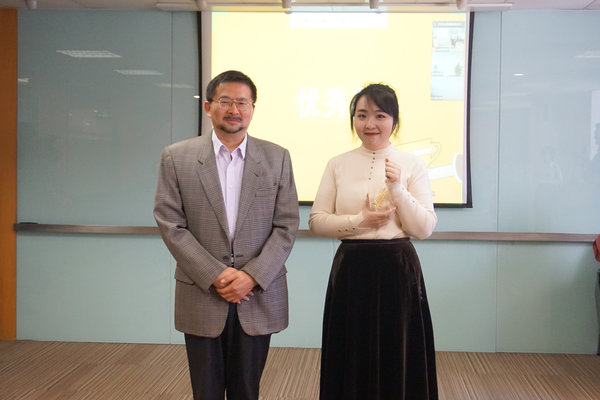 ▲ 楊林森老師為姚文杰頒獎(遠程會議連線)                                                        ▲丁永凡老師為蔣靜靜頒獎