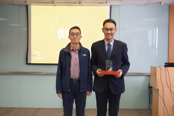 ▲張亞洲老師為鄭海洋頒獎                                                                       ▲彭鯤鵬老師為韓宏星頒獎