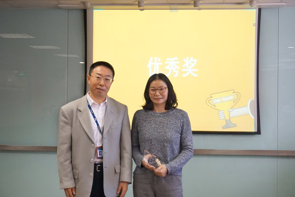 ▲杜誠老師為王偉楠頒獎                                                                ▲王艷江副所長為嚴小艷頒獎