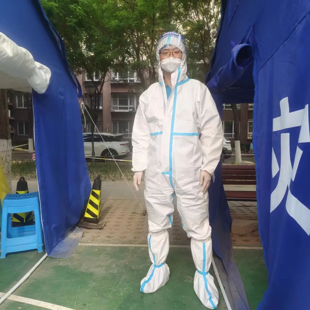 訴訟部的張亮化身 “大白”,為居民登記核酸檢測信息、維持現(xiàn)場秩序、檢查健康碼。