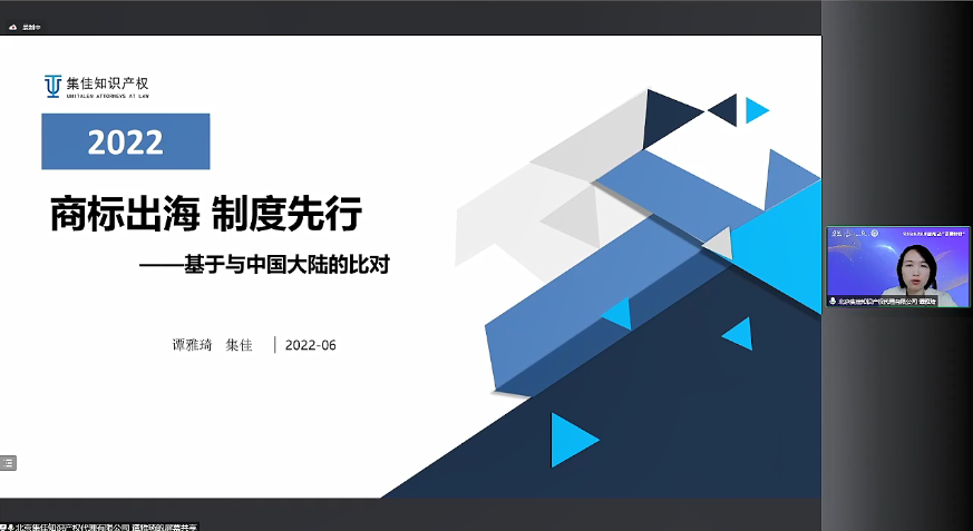 譚雅琦律師以“商標出海,制度先行”為主題,為參會企業帶來一場內容充實的商標申請策略分享。她從商標申請原則、商標審查流程、商標近似及商品類似審查等方面,對中國大陸和其他國家或地區的相關制度與流程進行對比,為企業梳理在海外開展商標布局的思路;通過詳實豐富的案例分析,生動地揭示了企業了解不同國家和地區的審查流程與特點,提前進行風險防范與規避的重要性;并針對熱點國家和地區商標審查過程的焦點問題及應對方式,為企業提出了不少具有建設性的意見和建議。