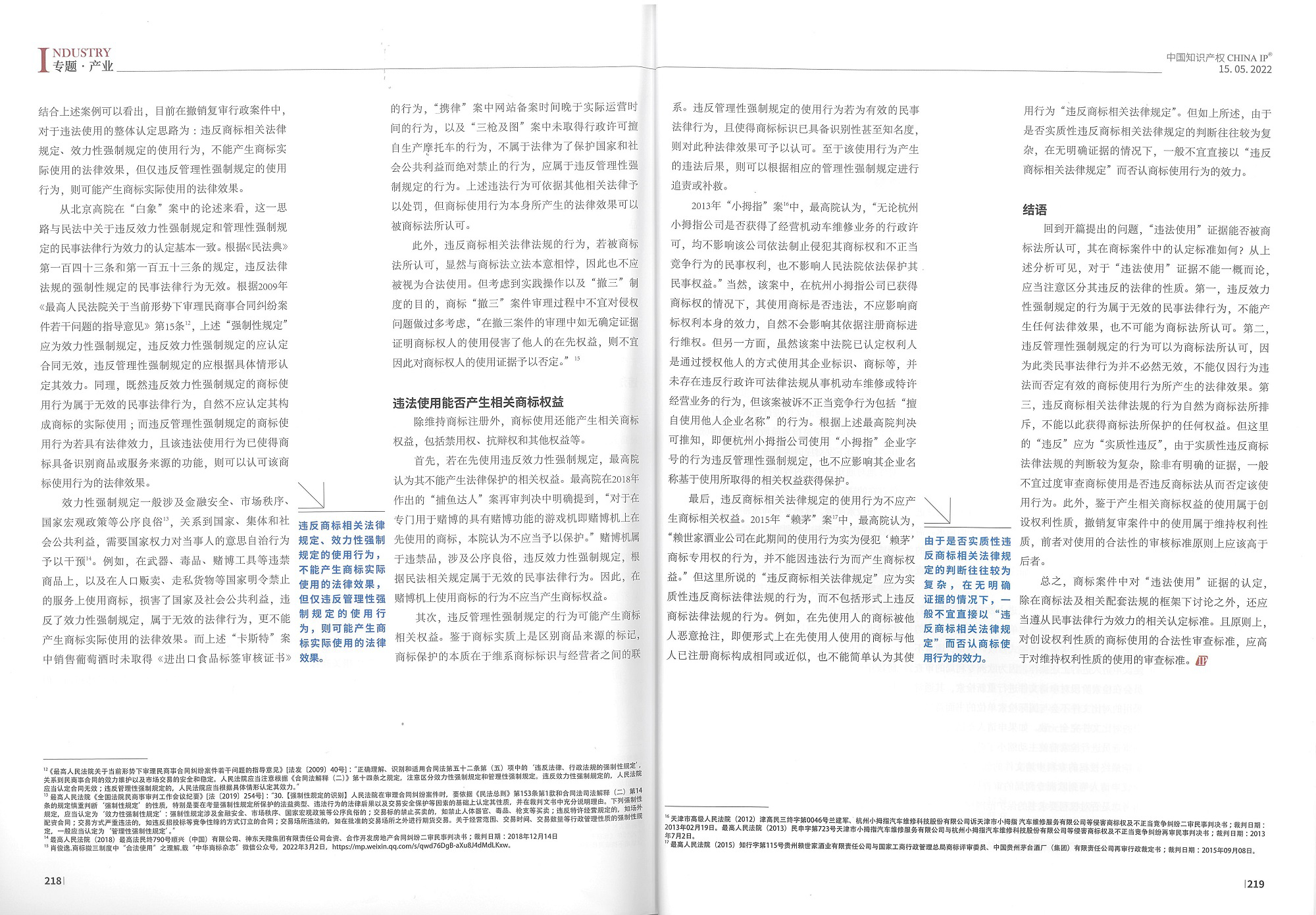集佳文章《“違法使用”證據在商標案件中的認定標準》在《中國知識產權》發表