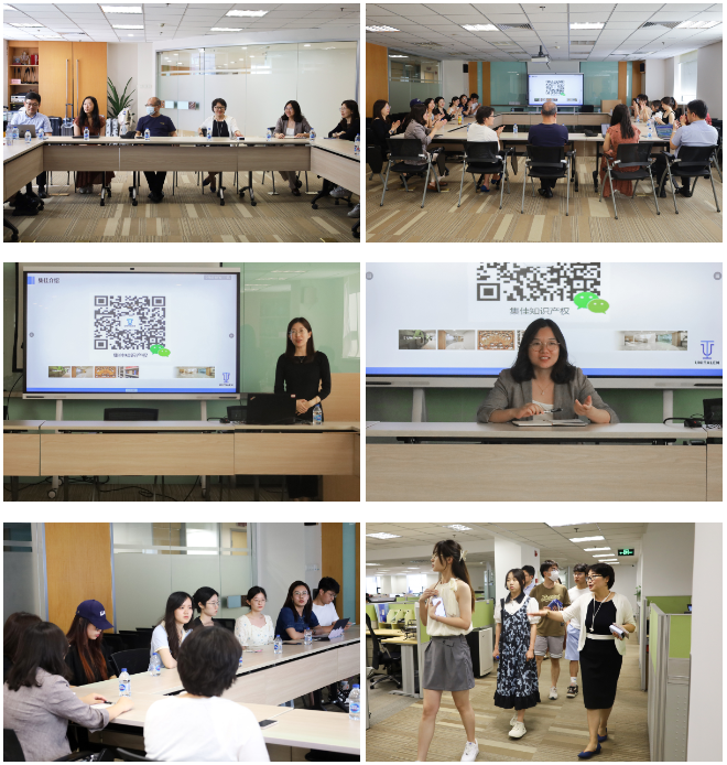 7月4日,同濟大學上海國際知識產權學院研學團在學院黨委書記覃文忠主任、學院助理研究員劉迪老師、學院輔導員韓越老師的帶隊下訪問集佳,開展研學交流活動,集佳人力資源部高巍主任、李珊珊、同濟大學校友伍君律師等熱情接待來訪師生。