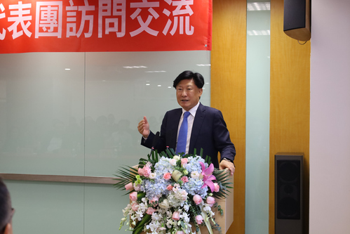 于澤輝所長對代表團蒞臨集佳考察表示熱烈歡迎,并與海商會副會長王桂良先生、副會長兼秘書長黃旭昇先生互相交換禮物。