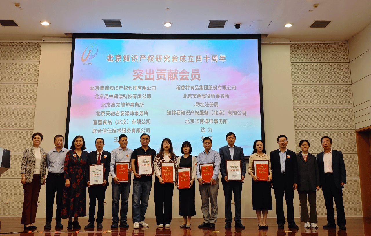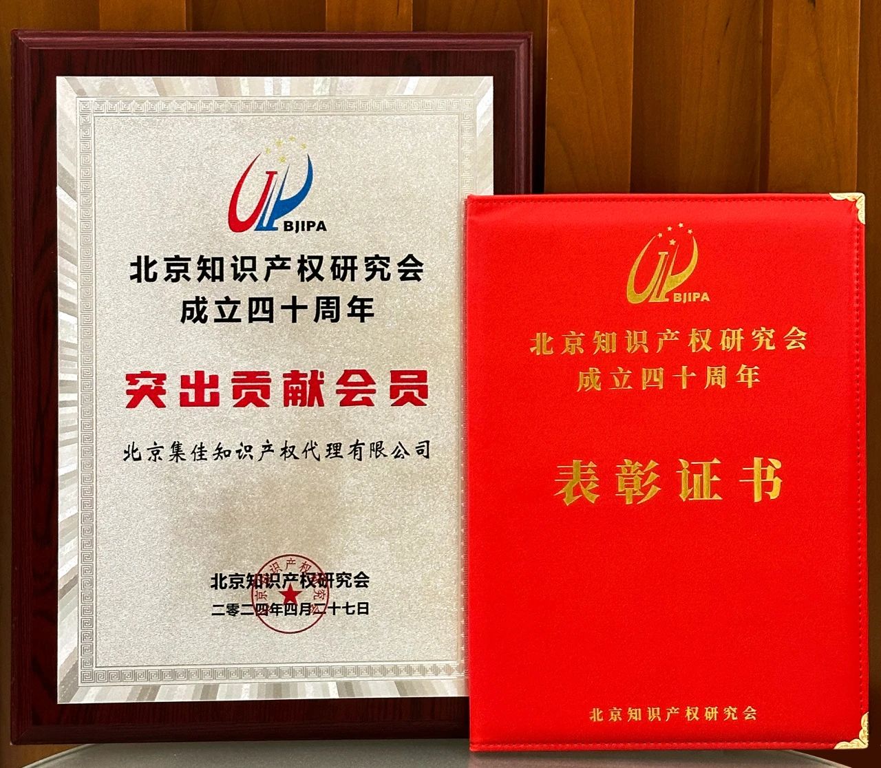 2024年4月27日,北京知識產(chǎn)權(quán)研究會成立四十周年慶典暨數(shù)字經(jīng)濟與知識產(chǎn)權(quán)論壇隆重召開。在慶典儀式上,北京知識產(chǎn)權(quán)研究會會長、北京航空航天大學(xué)教授孫國瑞向在研究會工作中做出突出貢獻的個人和機構(gòu)頒發(fā)了榮譽牌匾,北京集佳知識產(chǎn)權(quán)代理有限公司獲評“突出貢獻會員”榮譽稱號。