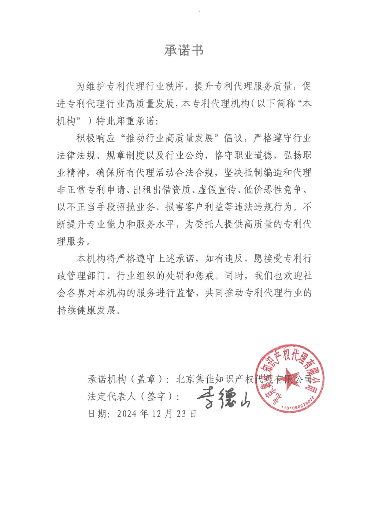 集佳鄭重承諾:全面落實《推動行業高質量發展倡議書》 促進專利代理行業高質量發展