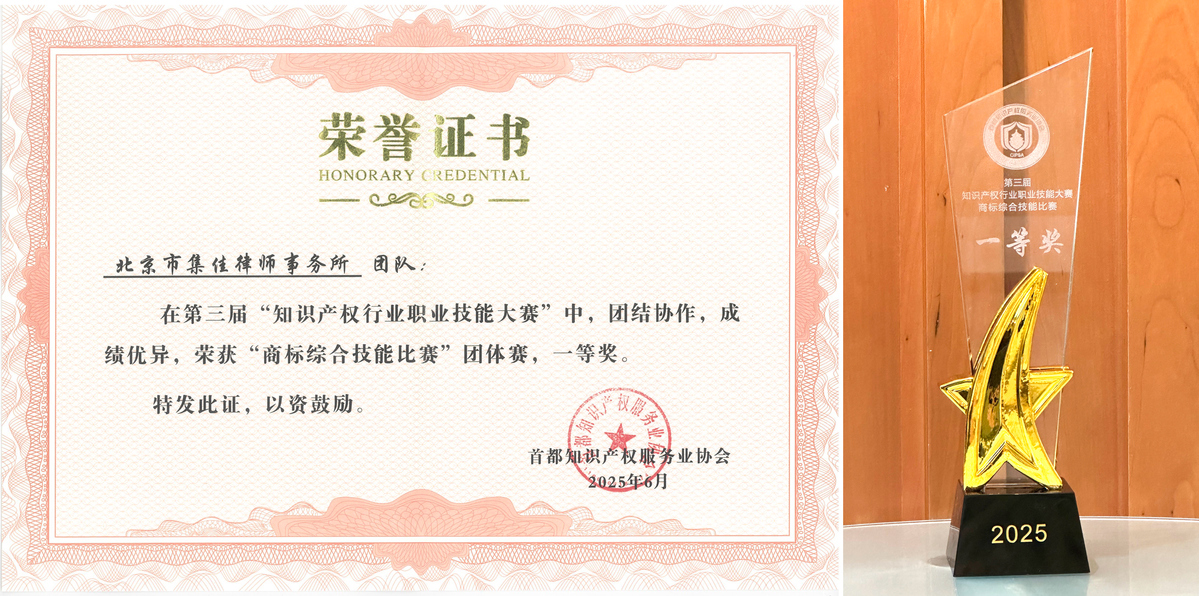 近日,由北京市知識產權局、海淀區市場監督管理局指導,首都知識產權服務業協會主辦的第三屆“知識產權行業職業技能大賽”圓滿落幕。集佳代表隊在比賽中展現了深厚的專業素養,斬獲多項殊榮:由王斯沄郝博文王嬌嬌組成的商標團隊在商標綜合技能比賽中力戰群雄,榮獲一等獎;青年代理人徐欣行業英語演講比賽中表現優異,榮獲二等獎