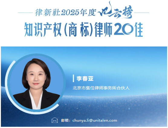 集佳合伙人李春亞律師榮登“律新社2025年度風(fēng)云榜:知識產(chǎn)權(quán)(商標(biāo))律師20佳”榜單