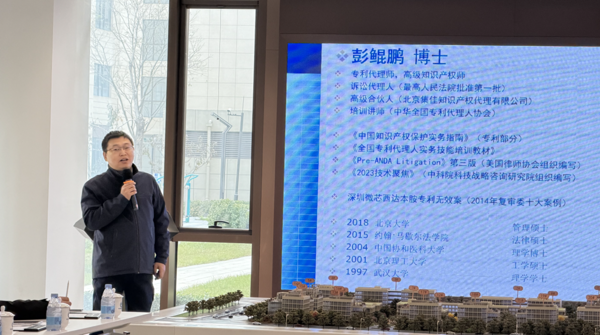 為進一步提升企業知識產權創造、保護和運用能力,助力企業攻克高價值專利挖掘難題、筑牢出海知識產權“防護墻”,2025年10月24日,由北京市知識產權局、北京市知識產權公共服務中心聯合主辦的知識產權服務機構業務講解系列活動在中關村(通州)醫學轉化產業園成功舉辦,活動吸引了園區二十余家生物醫藥、醫療器械方面的創新企業代表參加。集佳合伙人彭鯤鵬博士應邀參加活動,圍繞企業出海知識產權保護策略為科技企業講解相關知識,加強與園區企業的溝通交流。